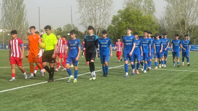 Y venía uno de los rivales más exigentes de la liga y que, sin duda, es el que mejor estado de forma está, contando sus partidos por victorias desde febrero. Un Atlético de Madrid que nos había empatado a puntos, y aunque sin aspiraciones a ascender, sus chicos se quieren ganar un puesto en equipos grandes de la cantera y no pueden desperdiciar minutos. Un equipo de cantera de primer año, que le costó arrancar, pero que ya nos consiguió empatar en la ida y sabíamos que había evolucionado muchísimo en toda esta vuelta. Un equipo muy valiente y con un gran trato de balón, con mucha movilidad y calidad que pone a sus rivales las cosas muy difíciles.